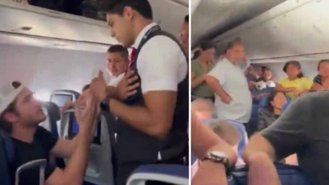 “Los pasajeros no estaban contentos y uno de ellos abrió la puerta de emergencia y salió al ala”, dice el informe. “Este evento requirió que se cambiara el avión”.