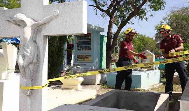Los elementos de Protección Civil recorrieron los panteones municipales y privados donde supervisaron las condiciones de las tumbas, y acordonaron las que consideran que representan riesgo para los visitantes.
