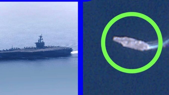 Imágenes disponibles públicamente de los satélites europeos Sentinel-2 muestran al Abraham Lincoln en el mar Arábigo a unos 240 kilómetros de la costa de Omán.