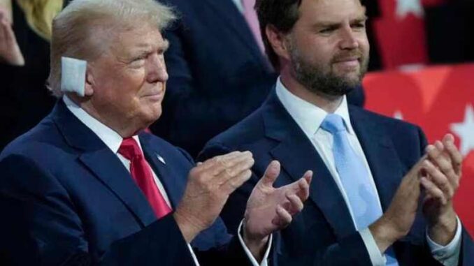 Donald Trump reapareció con un gesto serio y la oreja vendada en medio de aplausos, ovaciones y público en pie, luego de que el Partido Republicano confirmó la candidatura de Donald Trump para las elecciones de noviembre próximo.