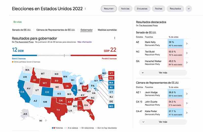 Diferentes medios de comunicación de Estados Unidos difunden los resultados de las elecciones intermedias de forma simultánea. Google es otra de las alternativas que se tienen para conocer qué partido fue favorecido por el voto de los estadounidenses: el demócrata o el republicano.