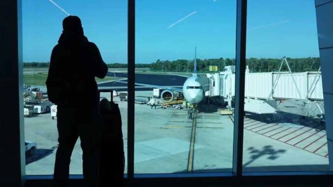 Pasajeros esperan para abordar un avión, este miércoles, en el aeropuerto de Cancún (México). EFE/ Alex Cruz