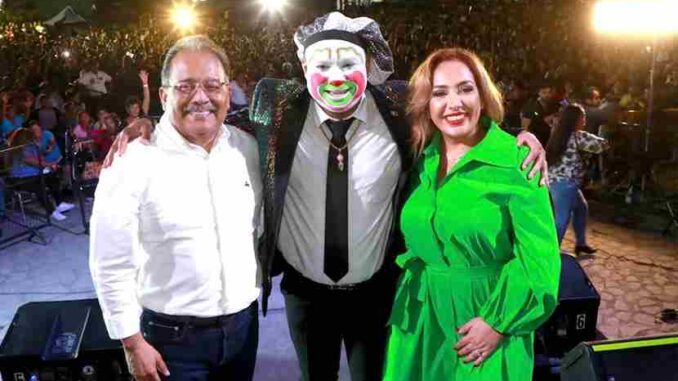 Tras su mensaje, fue el mismo Edil, acompañado de su esposa, quien presentó en el escenario al invitado más esperado, Brincos Dieras, originando la algarabía del público.