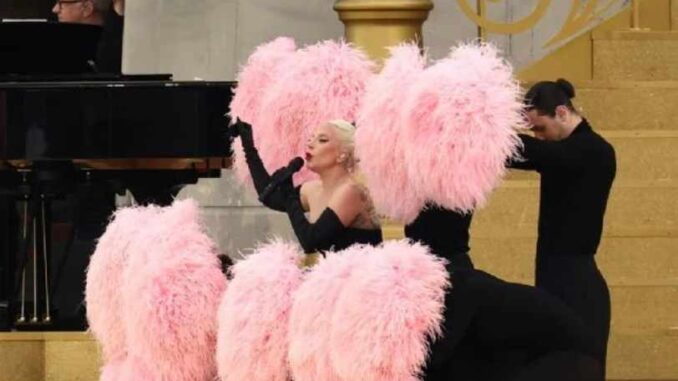 París.- La cantante estadounidense Lady Gaga salió de una estación de metro típicamente parisina, construida para la ocasión junto al Sena, para ofrecer la primera gran actuación musical sorpresa de la ceremonia inaugural de los Juegos Olímpicos, con un número de cabaret.