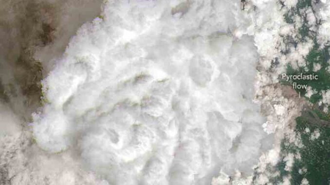 Según el Observatorio de la Tierra de la NASA, las avalanchas de ceniza, tefra, tierra y otros desechos sobrecalentados corren a gran velocidad y pueden causar gran destrucción. La erupción produjo varios de estos flujos, incluido uno que alcanzó una longitud de 19 kilómetros, según la Junta Nacional de Gestión de Desastres de Indonesia (BNPM).