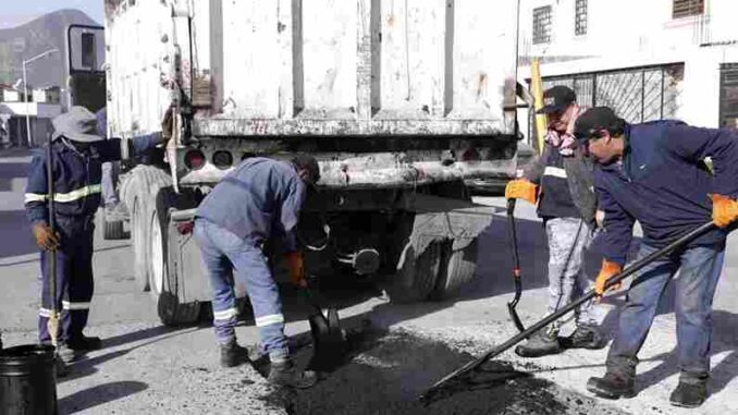 Una de las cuadrillas se centró en la reparación de la calle José Silvestre Aramberri, en su tramo entre la Avenida Raúl Caballero y Guadalupe Victoria, en la Colonia Los Olivos.