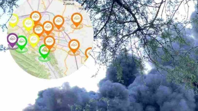 Algunas estaciones como la de Santa Catarina está en color morado que es calidad del aire “extremadamente mala” que es el máximo nivel de gravedad.