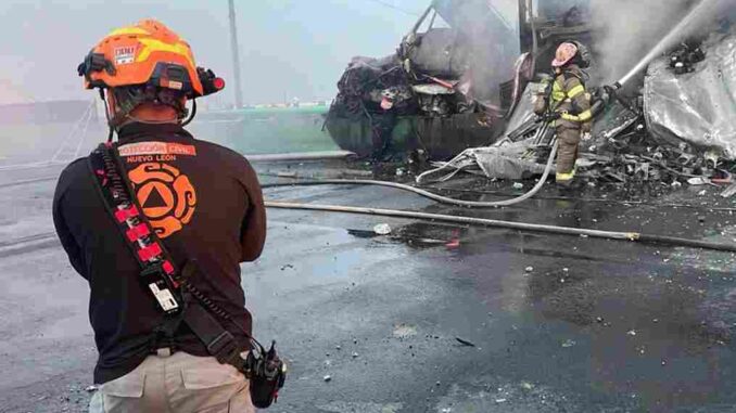 De acuerdo con las autoridades, un tráiler que circulaba sobre la mencionada vialidad se brincó un carril, posteriormente derribó varios postes de luz y posteriormente se incendió.